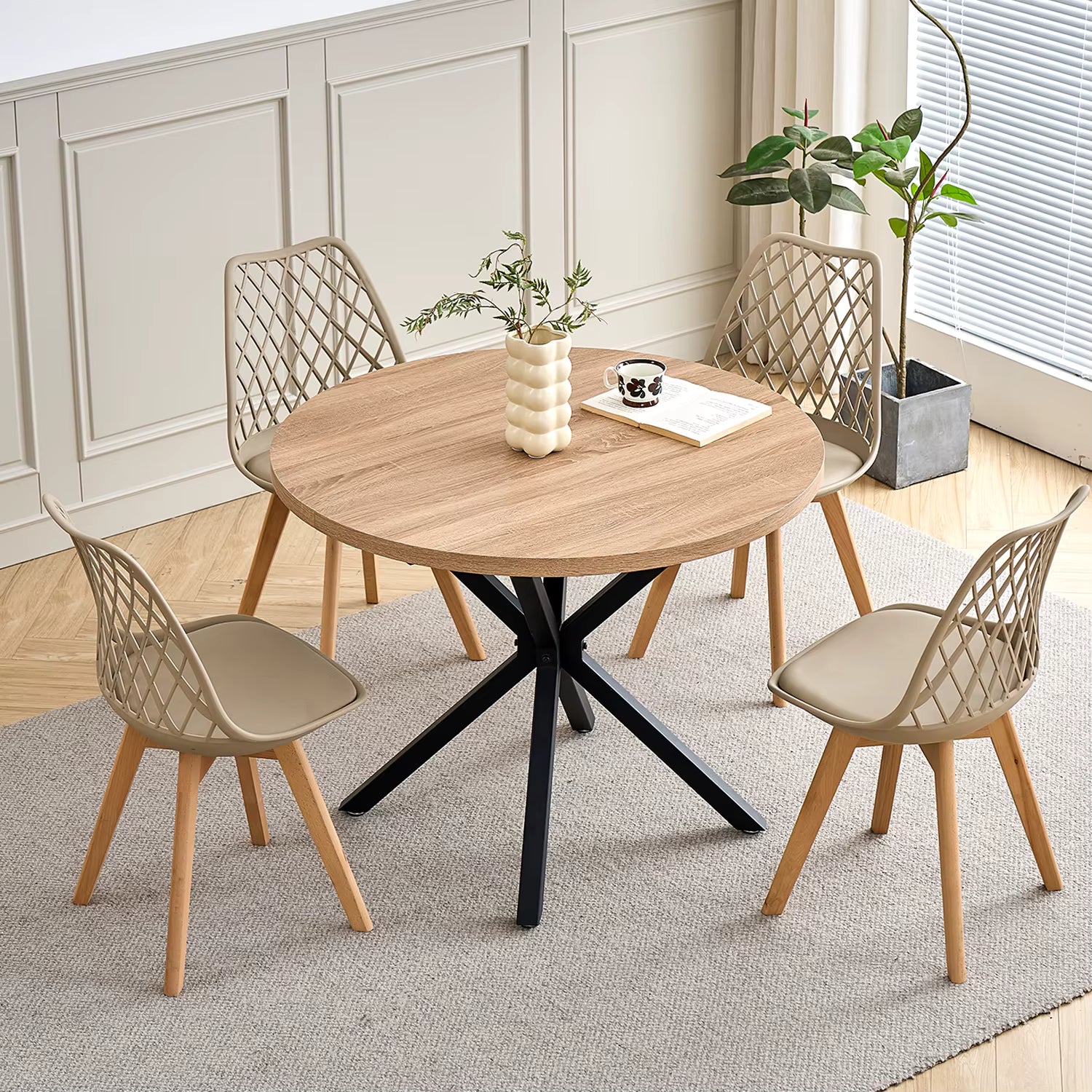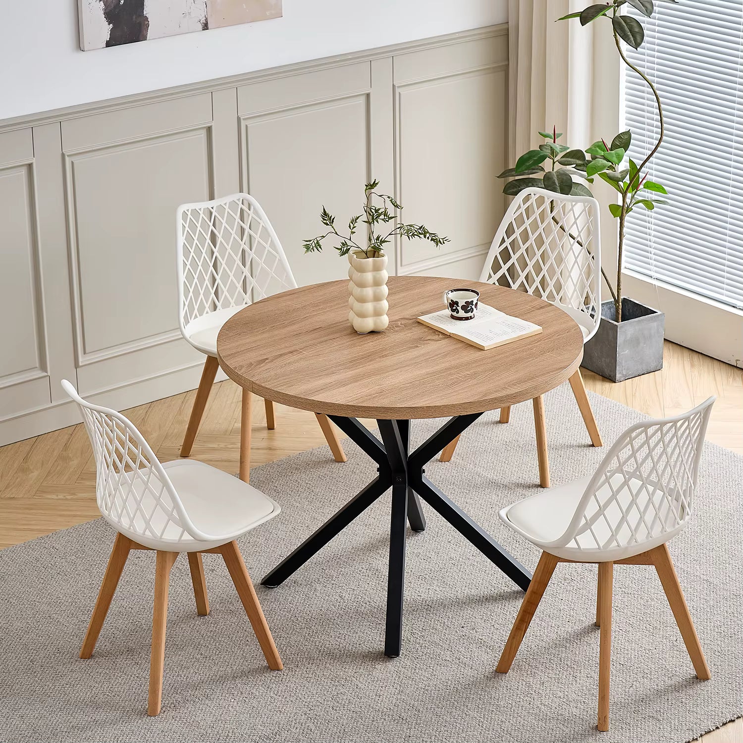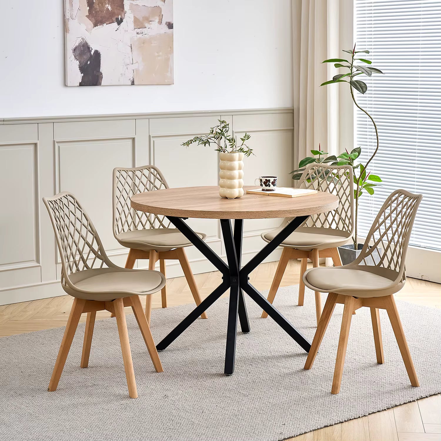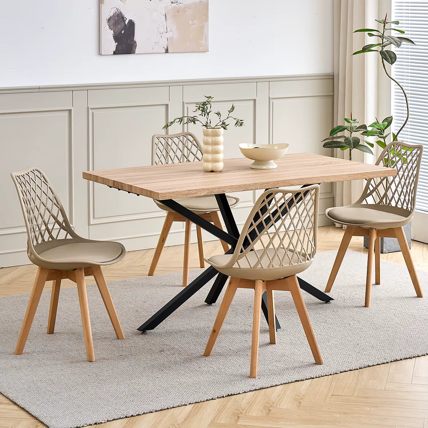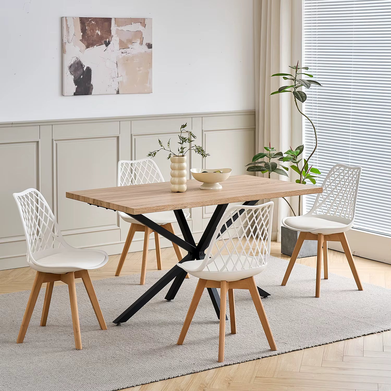 Piètement en bois de hêtre massif solide et assise en plastique robuste, garantissant stabilité, longévité et facilité d’entretien au quotidien.